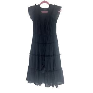 J.Crew Re-Imagined Women's Black Ruffle Tiered Midi Dress Cotton Blend