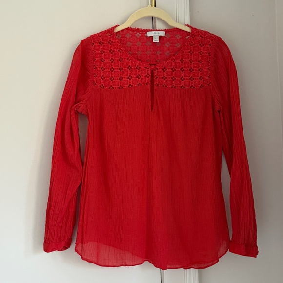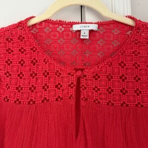 J.Crew Embroidered Cotton Gauze Blouse in beautiful red color. Very good gently pre-worn condition. Size 8.