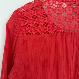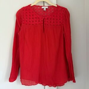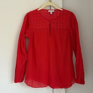 J.Crew Red Cotton Gauze Blouse with Embroidered detail. Size 8