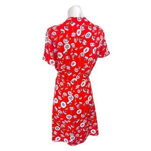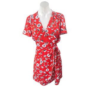 J.Crew Women's Red Floral Short Sleeve V-Neck Tie Waist Mini Fit & Flare Wrap Dress Size 6