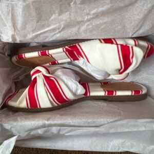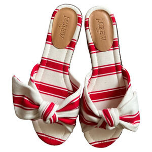 J.Crew Red/ Ivory Stripe Print Knot Slide Sandals, US7