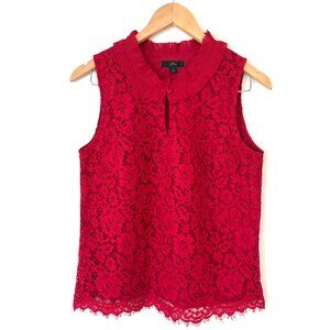 J.Crew Red Lace Ruffle Neck Sleeveless Top Christmas Holiday Preppy Sz S