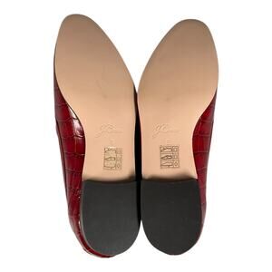 Elevate your style with these stunning J.Crew red croc-embossed leather loafers, expertly crafted in Morocco. The sleek silhouette and rich crimson hue make these flats both timeless and statement-making — perfect for work, casual outings, or a night out.