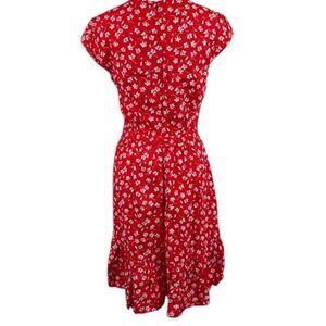 J. Crew Red White Floral Faux Wrap Mini Dress Ruffles Viscose Size 2