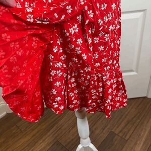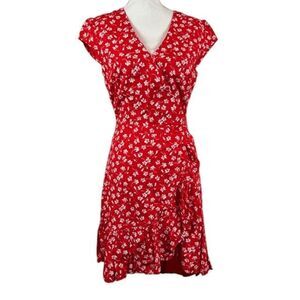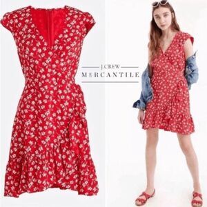 J. Crew Red White Floral Faux Wrap Mini Dress Ruffles Viscose Size 2. Excellent condition. See photos for details and unstretched measurements. Shop my closet and bundle multiple items for discounts and one shipping fee!