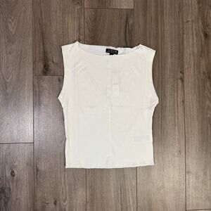 J.Crew Refined Rib Shell Tank WMNS M Cream Pullover Slim Fit Boatneck Satin Trim
