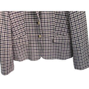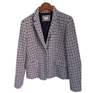 J.Crew Regent Houndstooth Blazer Gold Buttons Wool Blend Lined Size 14