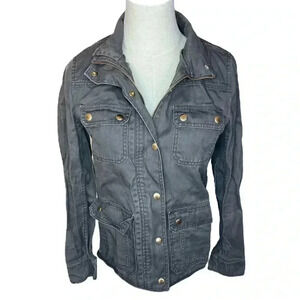 J.Crew Relaxed Boyfriend Field Jacket Army Green Cargo Gold Buttons Size XS