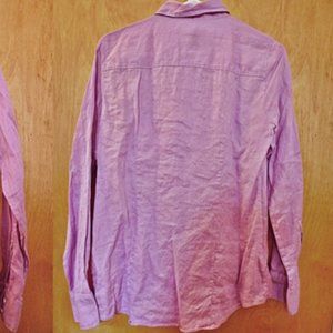 Very comfortable, lightweight and easy to wear button up linen shirt in sweet mauve color. Relaxed fit but not overly loose, great whether tucked in or out. Long sleeves with button at cuffs, darts at the back for a more fitted look and curved shirttail. Made of 100% quality linen.