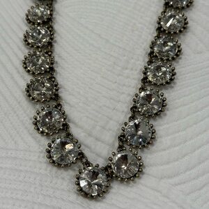 This dark brass and rhinestone necklace is expandable 18-20” and never worn. Goes great with any outfit.