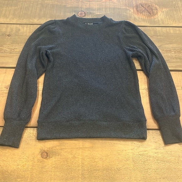 J.Crew brushed rib long sleeve with puff shoulders. Dark heathered gray, XS. Thick tee, light sweater weight. Some pilling. Worn a few times.
