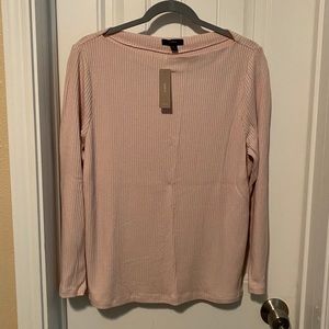 NWT Long Sleeve Ribbed T-Shirt with a Bateau Neckline in light Pink