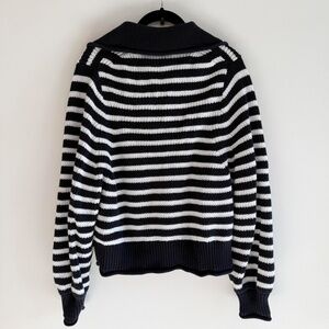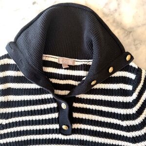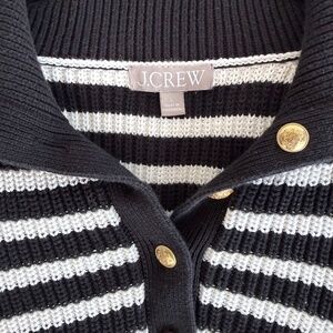 J.Crew Ribbed Button-Collar Sweater | Women’s Large | Black White Stripe