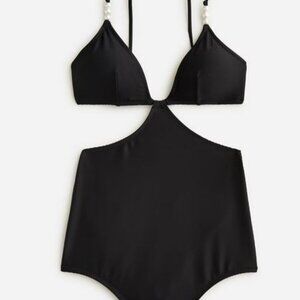 JCrew Ribbed Cutout black swimsuit with pearls - NWT - size 8