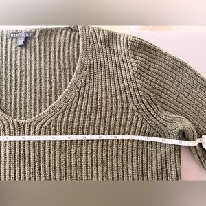 Chic olive ribbed sweater. Ideal for layering. Conditions: Lightly Worn