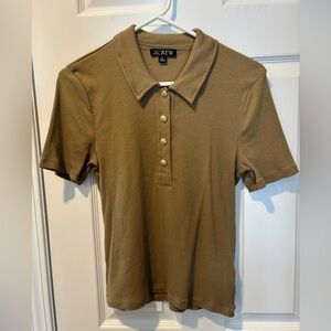 Camel colored short sleeved collared top. Ribbed. Gold buttons. Size medium . Measure is 21 1/2 inches from shoulder to hem. Like new! 57% cotton 38% modal 5% elastane