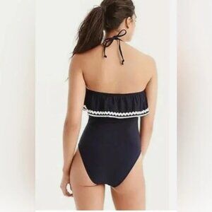 J.Crew Rickrack Ruffle Bandeau One Piece Swimsuit Womens Size 4 Navy Tie Neck