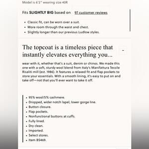 J.Crew Rivington topcoat in Italian wool blend 34/S