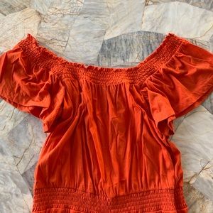 Orange Romper. Shorts and straps that can be off the shoulder or on the shoulder. Worn once. Very comfortable and stretchy.