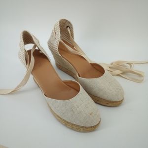J.Crew Round Toe Espadrills Wedges Natural 8.5