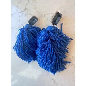 J.Crew Royal Blue Tassle Earrings with Blue Rectangle Jewel