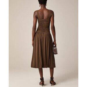 J.Crew Ruched Drop-Waist Bubble Dress in Matte Jersey Brown