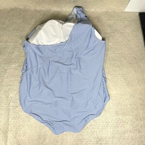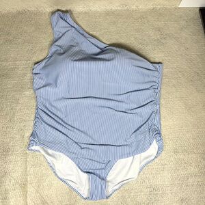 J.Crew Ruched One-Shoulder One-Piece Seersucker Blue/White Stripes Size 24 NEW