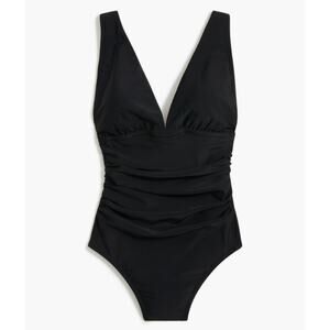 J.Crew Ruched Plunge One‑Piece Swimsuit Women’s Size XL – CI098, Black Colorway, Deep Plunge V‑Neckline, Adjustable Thin Shoulder Straps, Front-Ruching Detail, Stretchy and Supportive Fabric, Pull-On Style, Moderate Coverage, Fully Lined, Smooth Finish, Seamless Side Panels, Ideal for Beach or Poolside Looks, Resort Vacations, or Chic Sun Days.