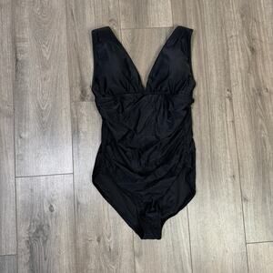 J.Crew Ruched Plunge One-piece Swimsuit WMNS XL Black Adjustable Straps Stretchy
