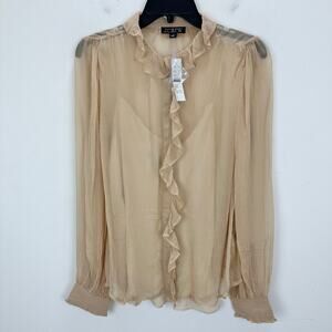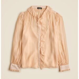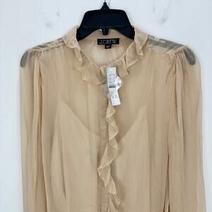 J.Crew Ruffle Button Up Shirt Crinkle Chiffon Sheer Boho Pale Pine Tan US 6 NWT.