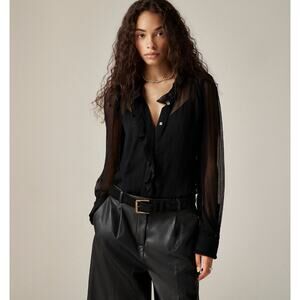J.Crew Ruffle Button Up Shirt Crinkle Chiffon Sheer Boho Pale Pine Tan US 6 NWT