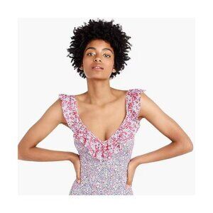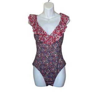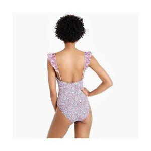 J.Crew Ruffle Deep-V One-Piece Swimsuit Womens Size 8 Floral Cottagecore Beach