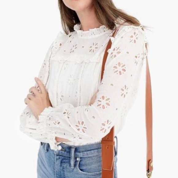 J.Crew Ruffle Neck Long Sleeve Eyelet Top Small