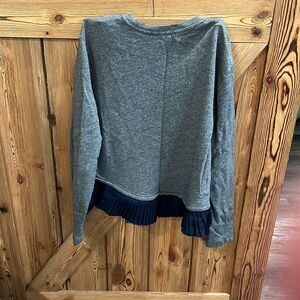 Super cute JCrew dark Heather Gray sweatshirt with navy blue ruffles at the bottom.EUC. SzM
