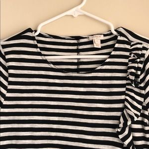 JCrew black and white ruffle top! It was worn one time and perfect for the workplace or a night out! Light weight and comfy!