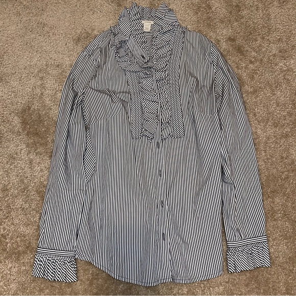 button up shirt from Jcrew with ruffle details at the neck and on the sleeves. Perfect for work!