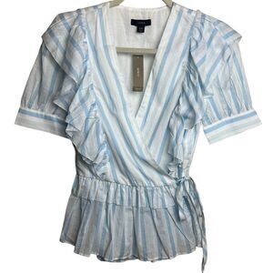 J. Crew Ruffle Wrap Top in Stripe NWT. Sz. XXS