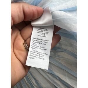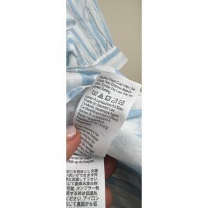 Classic wrap silhouettes and springy stripes. This shirt is made with organic cotton that is grown without chemical fertilizers and pesticides from non genetically modified seeds.