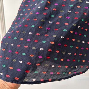 J.Crew Ruffle-Neck Silk Top in Lips Print size 8 Tall Navy Blue 100% Silk
