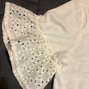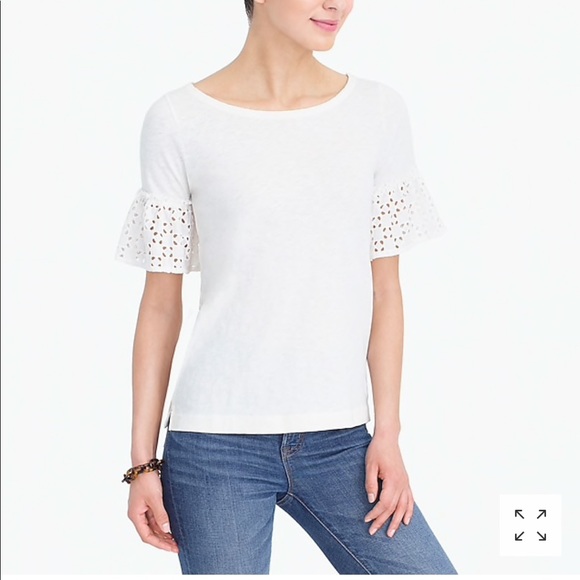 Pretty much new! White ruffle-sleeve j.crew top! Sold out on website! Women’s size Large I’m open to offers!
