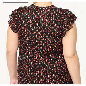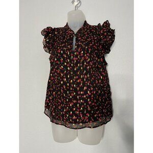 J.Crew Ruffleneck Flutter-Sleeve Top Red Black SZ M Key Hole Button NEW