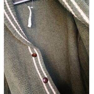 Upgrade your fall wardrobe with this premium J.Crew Rugged Merino cardigan. Crafted from a merino-wool blend for warmth and durability, it features a shawl collar, button-front closure, and two front pockets in a rich sage green hue that pairs easily with denim, chinos, or cords.