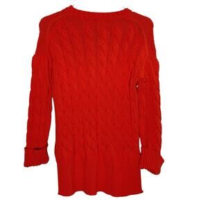 J.Crew S NEW Cotton Blend Cable Knit Side Slit Crewneck Sweater Scarlett Red