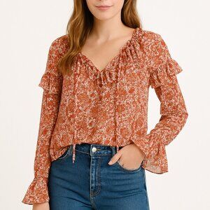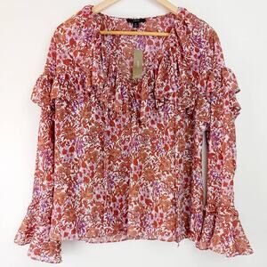 J.Crew SZ M Ruffle Crinkle Chiffon Top in Fête Floral NWT
