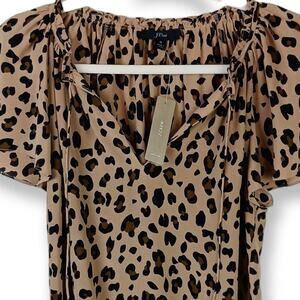 J.Crew SZ S Leopard Print Silk Flutter Sleeve Top In Mod Neutral NWT