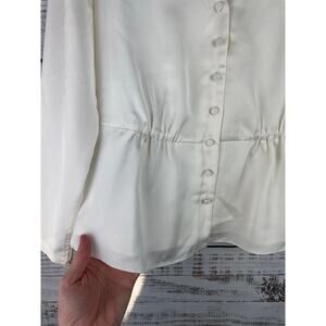J.Crew Satin Back Crepe Front Button Top White Size 2 Career Office Work Mature