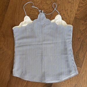 Blue and white striped scalloped shell top. Adjustable spaghetti straps. Fully lined. Like new - worn once.