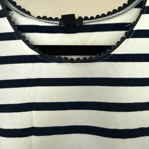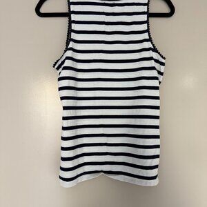 Brand: JCrew Size: S Navy and muted white striped tank with scalloped trim no stains no damage pet free, smoke free home