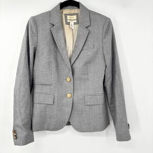 J.Crew Schoolboy Blazer Wool Grey Jacket with Gold Buttons, Navy Style, Size 2