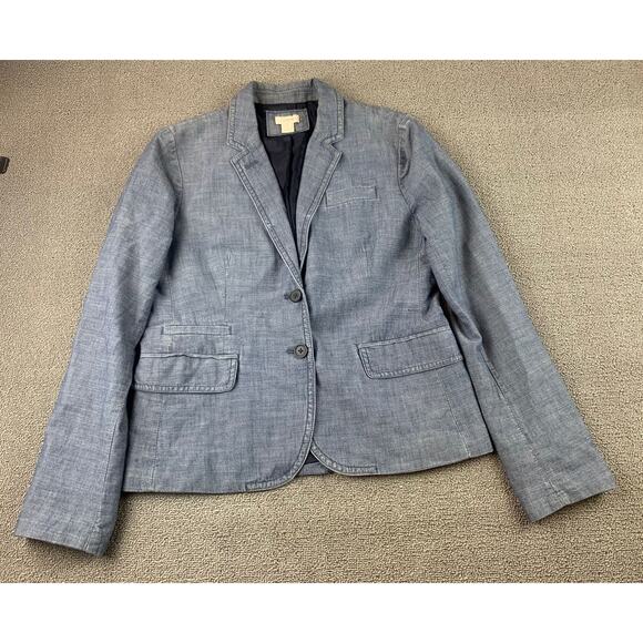 J.Crew Schoolboy Womens Jacket Size 8 Blue 100% Cotton Pockets Front Buttons
